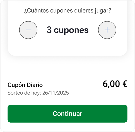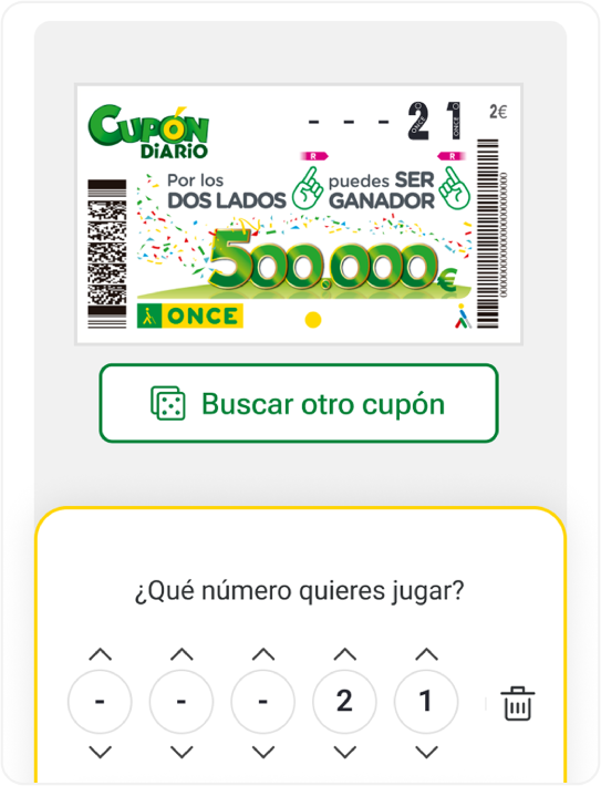 Con el Cupón Diario gana hasta 500.000 € y mucho más. Porque ahora, tanto las primeras como las últimas cifras del cupón, tienen premio. ¿Conseguirás hacerte con el número premiado?